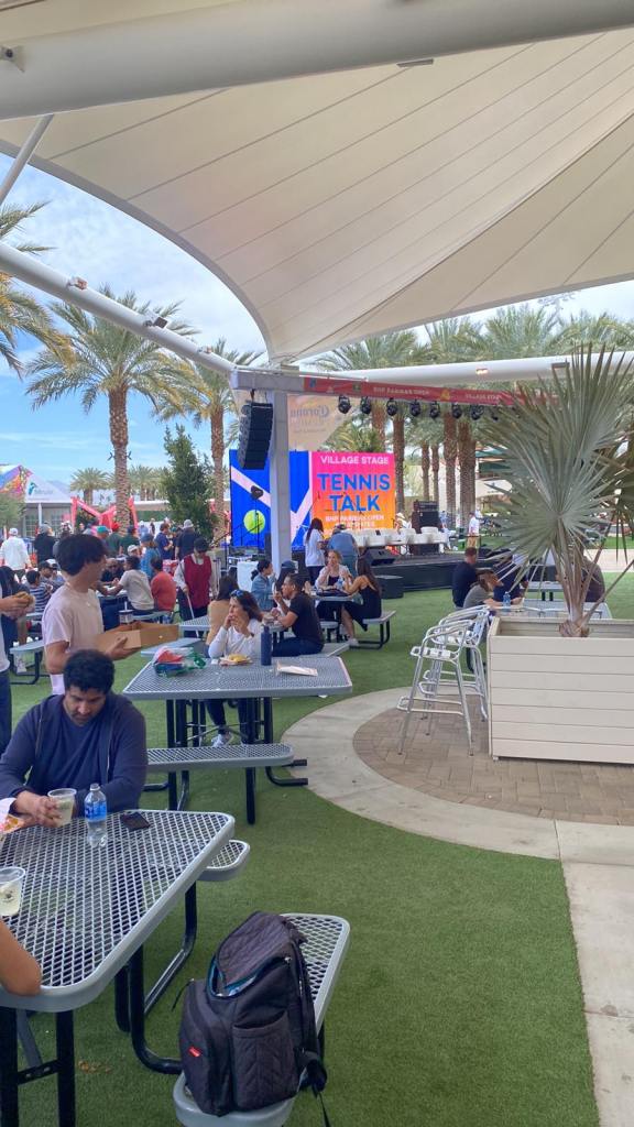 Apart from the tennis, several fan zones were set up around the venue. These zones offered various entertainment options, including live music, games, and giveaways. The various fan zones created a lively and fun atmosphere, adding to the event’s overall experience. When it came to food and drink options, there was a great selection available. The venue offered various dining options, from grab-and-go snacks to sit-down restaurants. I particularly enjoyed trying some of the local cuisine, such as nachos and burritos. Plenty of drink options were available, including beer, wine, and cocktails. The overall quality of the food and drink was excellent, and it added to the experience of attending the event. Also, John McEnroe was playing some of his music on the Music Stage,