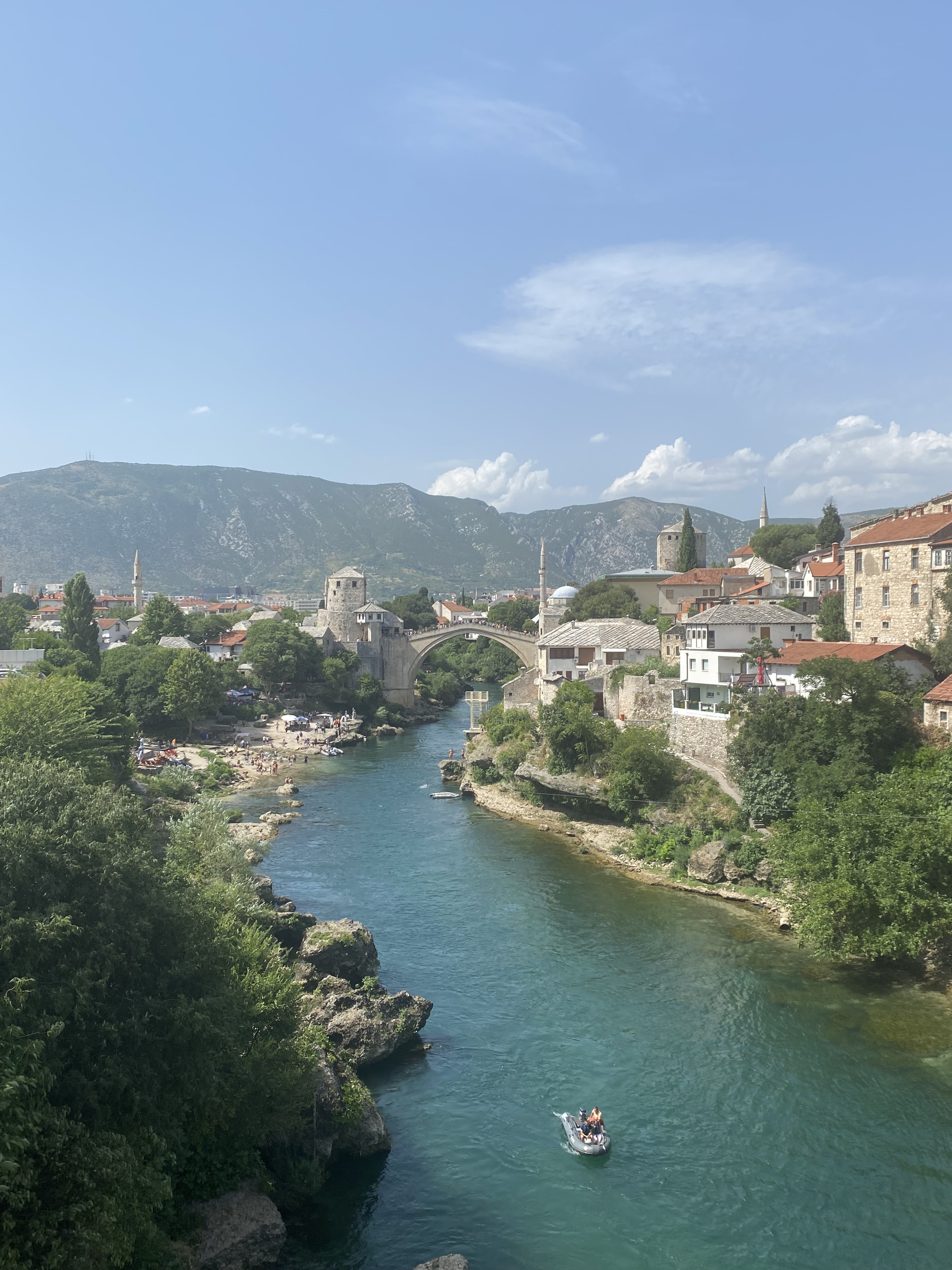 Mostar is a beautiful city situated in the southern part of Bosnia and Herzegovina, renowned for its rich history, stunning architecture, and the iconic Stari Most (Old Bridge) that spans the Neretva River. The city’s roots trace back to the medieval times, with a blend of Ottoman and Austro-Hungarian influences evident in its diverse cultural and architectural heritage. The Old Bridge, a UNESCO World Heritage Site, stands as a symbol of reconciliation and unity, having been meticulously reconstructed after being destroyed during the Bosnian War in the 1990s. Mostar’s Old Bazaar, known as Bazar Kujundžiluk, invites visitors to wander through its narrow cobblestone streets, lined with vibrant shops, traditional cafes, and historic landmarks. The city’s unique charm and the resilience displayed in the restoration of its cultural gems make Mostar a captivating destination for travelers seeking a blend of history, culture, and natural beauty in the heart of the Balkans.