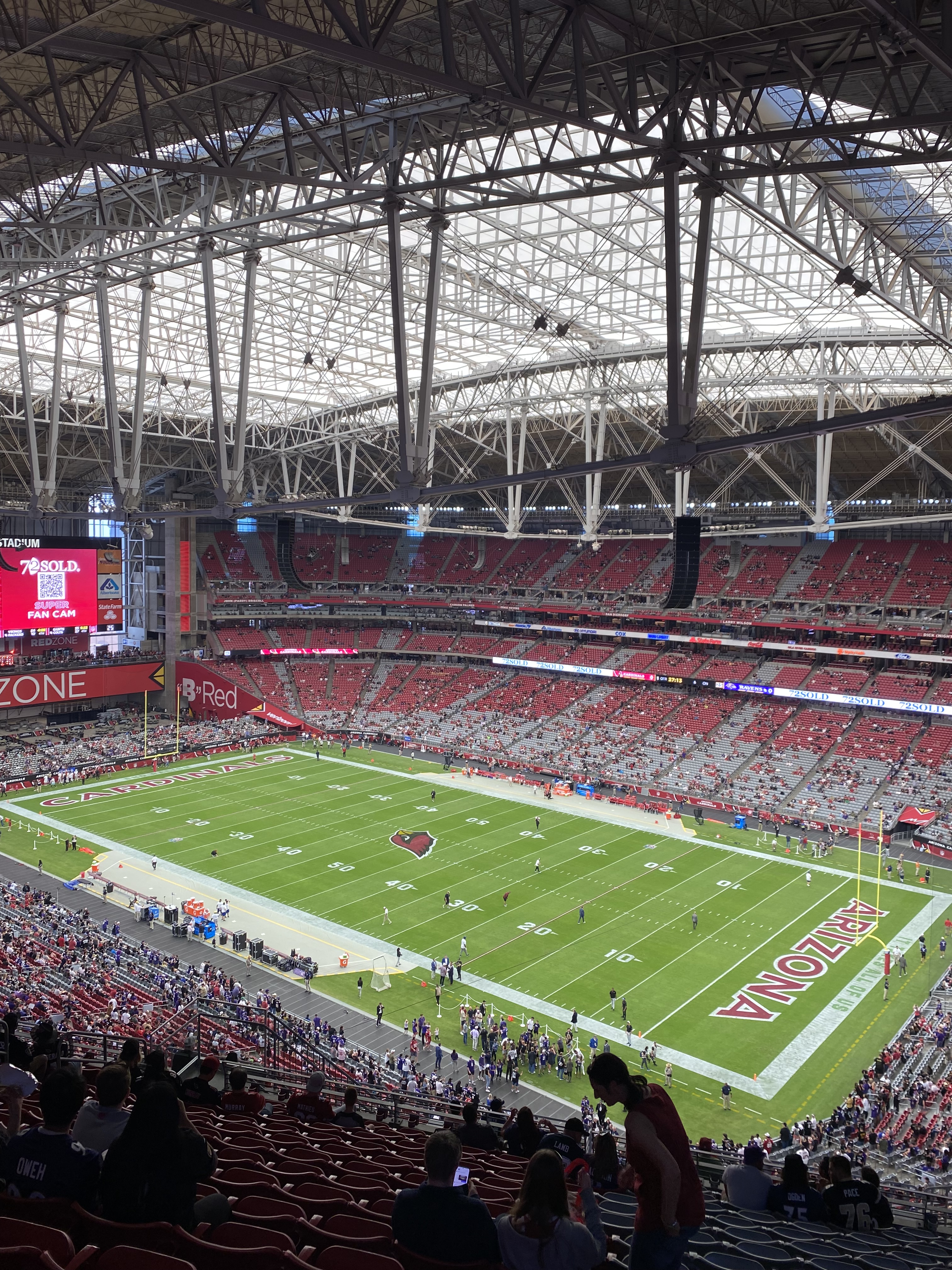 Experiencing the last year’s Super Bowl in Phoenix was nothing short of electrifying. Living just 20 minutes away from the stadium (State Farm Stadium, Arizona Cardinals’ home), the buzz leading up to the big game was tangible in every corner of the city. Even the ads at Phoenix Sky Harbor International Airport seemed to revolve around the Super Bowl, showcasing the excitement and anticipation that engulfed the entire region. As I navigated through the airport, the advertisements served as a constant reminder of the grand event that awaited. Below you can see pictures from one of the Cardinals games, on which stadium last Super Bowl was played.